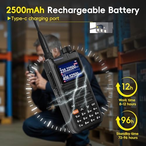 - 𝟐𝟓𝟎𝟎m𝐀h Battery & 𝐓ype-𝐂 Charging: The walkie-talkie is come with a 2500mAh battery, it can last for several days on a single charge, making it perfect for long trips and outdoor adventures. The Type-C charging feature eliminates the need for carrying bulky charging bases, ensuring you stay connected without hassle.