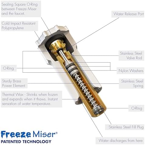 - Patented Temperature-Activated Design – Automatically activates as water temperature drops below 37°F/3°C, releasing only minimal water to prevent faucets from freezing.