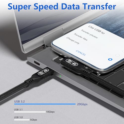 - 20Gbps Data Transfer Speed: This USB C to C cable meets the USB 3.2 Gen 2 x 2 standard. It can transfer data at 20Gbps, twice the speed of the last generation. This is fast enough for most devices and great for connecting portable external SSDs. (The actual speed may vary depending on your device's protocol.)