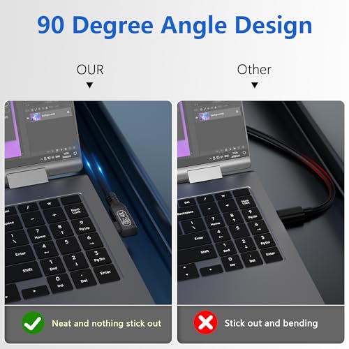 - Right-Angle USB C: This right angle USB-C charging cable accomplishes the fast charging function by virtue of its innovative 90-degree "L" shape design. It cleverly solves the problems of abrasion, excessive stretching and connection difficulties, thus greatly prolonging the service life of the charging cable. When you are engaged in activities such as playing games, watching videos or reading e-books during charging, it significantly enhances the convenience and comfort.