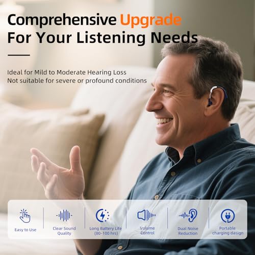 • Best Gift for Family: These Rechargeable hearing aids are great for elderly family members with hearing loss. It helps people with hearing loss hear better and live a normal life.Hearing loss can contribute to balance issues and difficulty communicating. VCOM hearing aids can help alleviate these challenges.It is the perfect gift to help seniors enjoy more social interactions, communicate easily with family members and enhancing their enjoyment of TV and music.