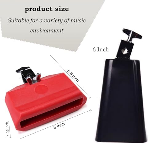 MOONBACK 6 Inch Cowbell And Jam Block Set, Plastic Musical Percussion Block, Latin Drum Instrument, Cowbell for Drum set Latin Percussion Instrument Kit Red