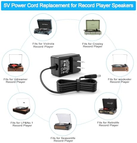 - [For 5V Wockoder Power Cord:] Compatible with Wockoder KD-2008 KD-2008BL KD2008 KD2008BL 3-Speed Wireless Portable LP Phonograph Record Player Belt-Drive Turntable Vinyl Stereo Speaker