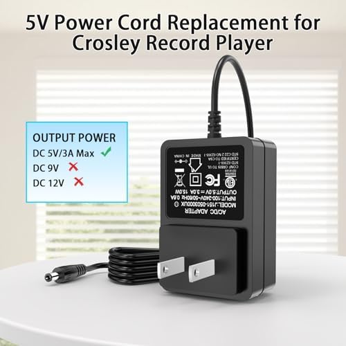 - [5V Replacement for Crosley Power Cord:] Compatible with Crosley Cruiser Plus Portable Turntable CR8005F-GA CR8005F-WO CR8005D-TU CR8005D-BL CR8005D-WS CR8005D-TW (not work for 9V and 12V Crosley Cruiser Recorder Player)