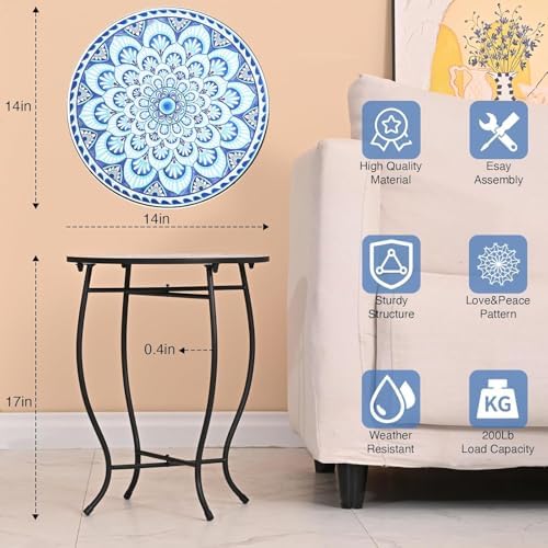 Weather Resistant Metal Round Side Table Perfeet For Outdoor Indoor 14Inch Metal Indoor Outdoor Side Table Simple and stylish design Clean lines and unique pattern Great material, Solid structure, Weather Resistant Perfect size to fit anywhere in the home and garden Ideal for Indoor& Outdoor Can be used as coffee table, bedside table, patio end tables, outdoor accent tables, or even as plant stands