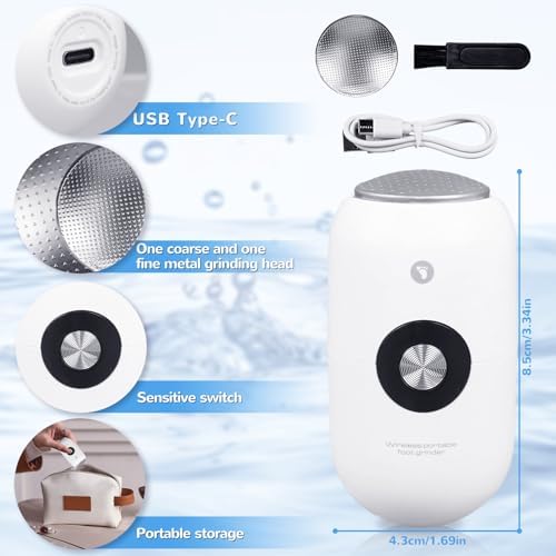 Electric Feet Callus Removers Rechargeable-Foot Scrubber Kit, Wireless Foot File with Metal 2 Grinding Head,3-Speed Pedicure Tools for Feet, Ped Egg for Dead Skin Heels and Hard Cracked Dry Skin