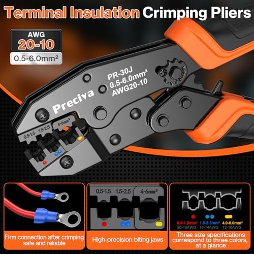 - MORE CONVENIENT TO USE: The insulation crimper jaws are marked red/blue/yellow and the corresponding crimping range. It is equipped with 3 sizes of connectors corresponding to 3 colors of jaws, making it easier to identify during crimping.