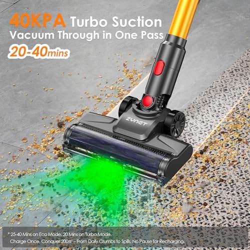 • 【40Kpa Powerful Suction - Conquer Pet Mess & Deep Debris】 Equipped with a high-performance motor, the Zynet S8 Cordless Stick Vacuum delivers up to 40KPa suction power. It effortlessly tackles pet hair, dog food crumbs, cat litter, and all types of debris—perfect for pet-friendly homes. Deep-clean carpets, hardwood floors, and tight corners with ease.