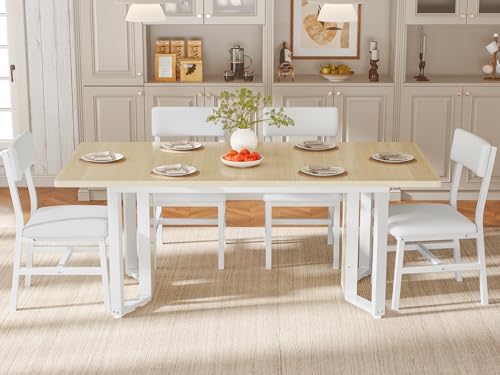 - Perfect for 4-6 People: Extendable dining table set for 6 fits any gathering size. When folded, it comfortably seats 4, and when fully extended, it easily accommodates up to 6. Its versatility makes it perfect for both small family meals and larger gatherings, ensuring you always have enough space for everyone. The tabletop is made of FSC certified wood.