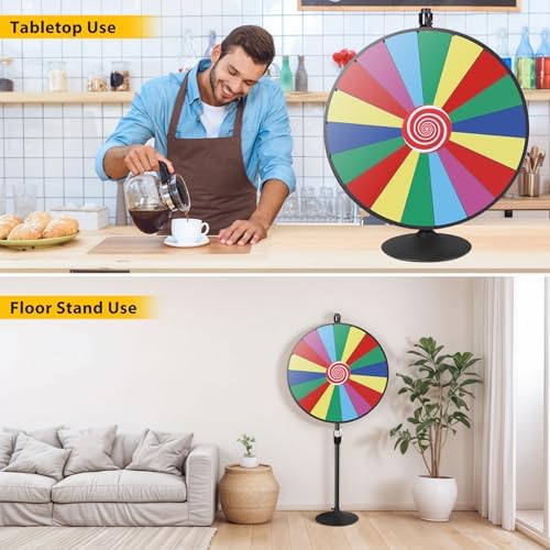 - 【Versatile Tabletop & Floor Stand Design】- Smartxchoices 36" Spinning Prize Wheel offers dual-use functionality – it can be set up as a tabletop spinner with a single pole and base or used as a floor-standing wheel with two poles. Perfect for trade shows, carnivals, parties, supermarkets, and more
