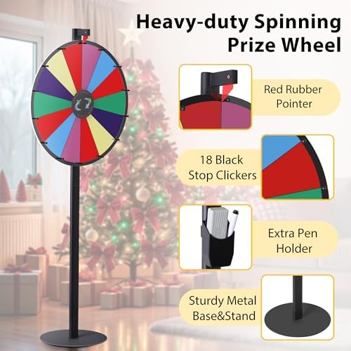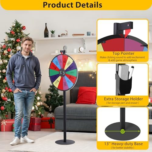 • 【Durable & Easy to Store】- Built with a sturdy metal base and anti-corrosion aluminum alloy pole, this prize wheel offers long-lasting durability and stability. Its detachable design ensures convenient, space-saving storage and easy portability for all your events