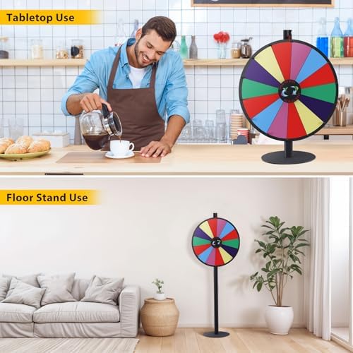 • 【Versatile Tabletop & Floor Stand Design】- Smartxchoices 24" Spinning Prize Wheel offers dual-use functionality – it can be set up as a tabletop spinner with a single pole and base or used as a floor-standing wheel with two poles. Perfect for trade shows, carnivals, parties, supermarkets, and more