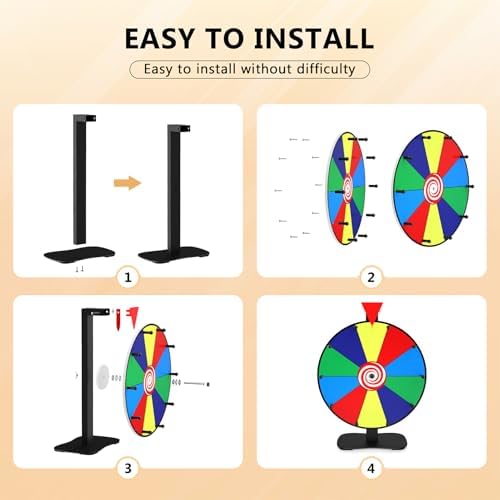 - 【Quick Assembly】: Simple 4-step installation for roulette spinner with stand: Attach base → Mount stand → Snap on wheel → Position pointer. Ready for promotions within minutes.