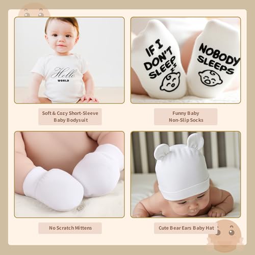 - 【Gender Reveal Gifts】 The complete baby gift set is made of top-quality materials, is very soft, breathable, and gentle on a baby's delicate skin. All items come in a neutral white color, perfect for either a baby boy or girl. It is an excellent choice for gender reveal gifts or baby showers.