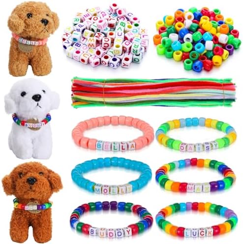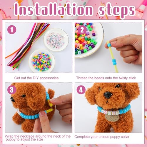 1040 Pcs Adopt a Puppy Pet Party Favors Puppy Adoption Party Supplies Make Your Own Dog Collar Necklace Kit with Beads for Pet Birthday DIY Craft