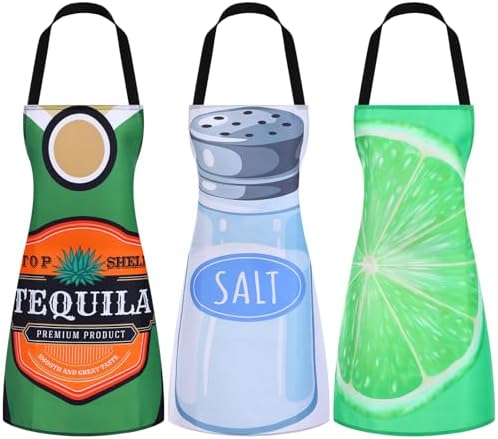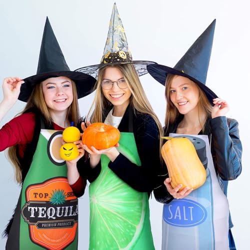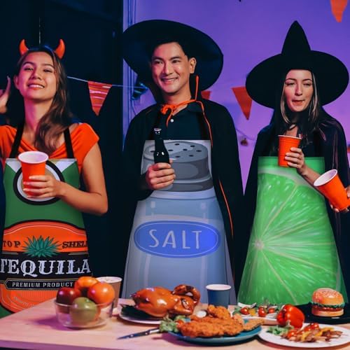 Mepase 3 Pcs Halloween Couple Costumes Aprons for Adults Tequila Bottle Lime Slice and Salt Costume for Halloween Drink Food Dress Group Cosplay Outfit Accessories