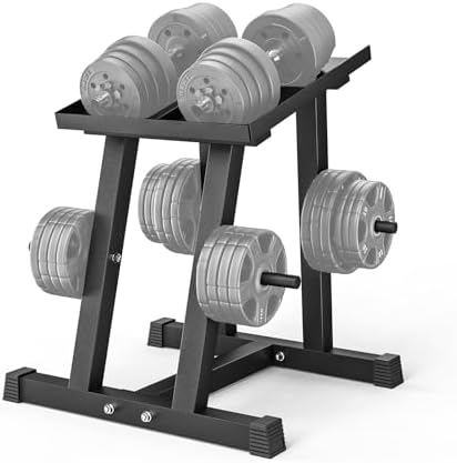 - HEAVY-DUTY DUMBBELL RACK & PLATE TREE: Stores up to 500LB of adjustable dumbbells, fixed weights & 1" plates. Heavy-duty construction keeps equipment secure with instant access, zero floor clutter for intense training.
