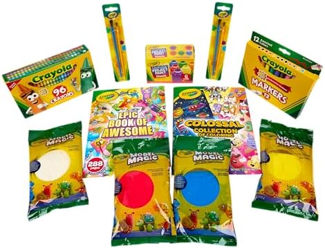 - 125-PIECE CRAYOLA ART KIT: Includes 96 Crayons, 6 Washable Paints, 4 Brushes, 12 Ultra-Clean Markers, 4 Tubs of Model Magic, 2 Giant Coloring Books, and more – all in one reusable storage box.