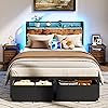 Furnulem Queen Size Bed Frame with Headboard Storage, Platform Bed Frame Queen Size with 2 Drawers, Charging Station and LED Lights, No Box Spring Needed, Noise Free