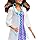 - Wearing a removable colorful print dress and classic white doctor's coat, Barbie doll is ready to make her rounds.