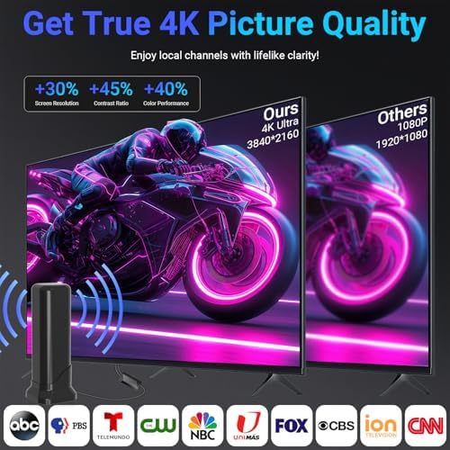 - 𝐄njoy 𝐅ull 𝟒𝐊 𝐇𝐃 𝐋ocal 𝐂hannels: Still struggling with cable bills? Get your 4K HD local channels at no cost with DTVSUBS TV Antenna Indoor! Instantly access to hundreds of news, sitcoms and sports like CBS, ABC, FOX, NBC, CW, PBS, ION, UNIVISION and more local channels. Enjoy a one-time purchase for endless entertainment