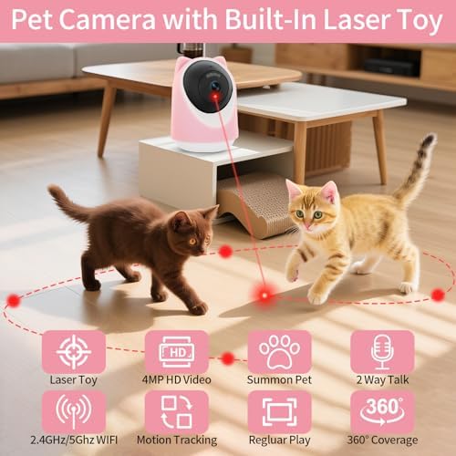 Pet Camera Indoor with Laser Toy 4MP 2.4/5GHz WiFi, Cat Camera with Phone App, Night Vision & Motion Detection Alerts - APP Remote Control Interactive Device for Dog Cat Monitoring Security
