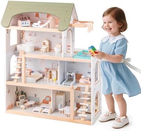 - Ideal for Little Ones: Ideal for children aged 3 and up, the toy dollhouse makes an excellent gift that encourages storytelling and role-playing. It’s not just a toy, but a tool that aids in the development of imagination, creativity, coordination, social, and language skills among young learners.