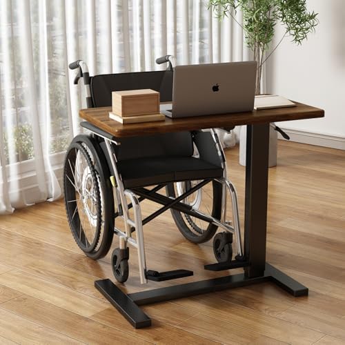 Overbed Table with Hidden Wheels, Height Pneumatic Adjustable Medical Bedside Table, Hospital Bed Table, Home Standing Mobile Laptop Cart & Rolling Tray Desk (Bedridden & Mobility Use)