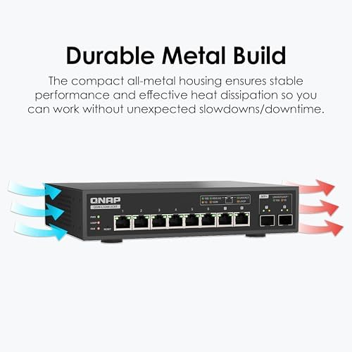 QNAP 8-Port Multi-Gig 10GbE Lite-Managed Network Switch (QSW-L3208-2C6T-US) – 6× 10/5/2.5/1G RJ-45, 2× SFP+/RJ-45 Combo