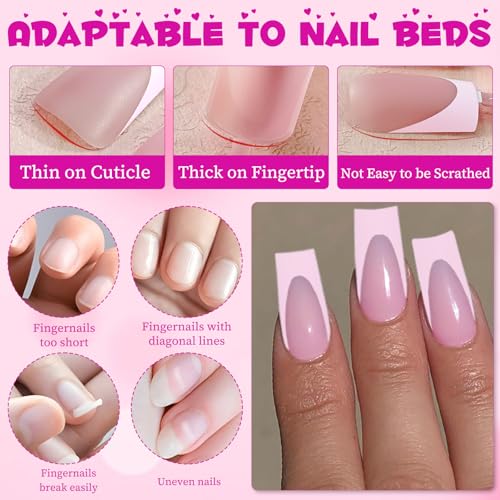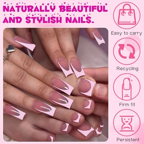 • Comfortable Press on Nails Pack: Medium french tip nails press ons square suitable for all nails, square medium press on nails pink french tips provide a snug, natural feel without bulkiness. Medium square french tip press on nails are flexible and won't lift, pink french nail tips ideal for typing, texting, and daily activities. French tip press on nails for women resist chipping and maintain vibrant colors, french press on toe nails offer a professional lasting look. Pink press on toes french tip make you to move freely without worrying about medium nails press ons french tip slipping off.