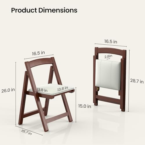 Wood Folding Chairs, Portable Foldable Chair with Padded Seats, Stackable Collapsible Chair for Outside Indoor Wedding Party Restaurant Meeting Room Patio Events Camping and Garden