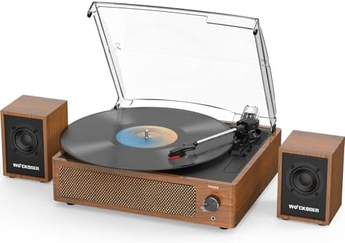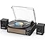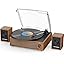 Record Player with External Bookshelf Speakers Belt-Drive Vintage Turntable for Vinyl Records Passive Dual Stereo Speakers LP Players 3 Speed Wireless AUX Headphone Input Auto Stop Retro Brown Wooden