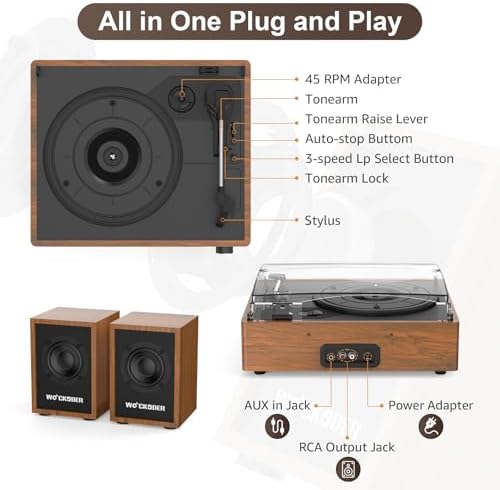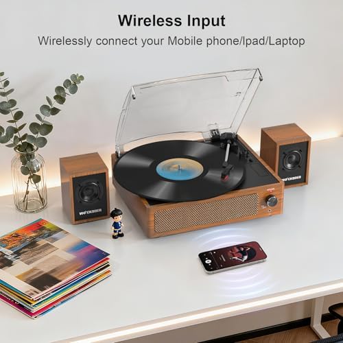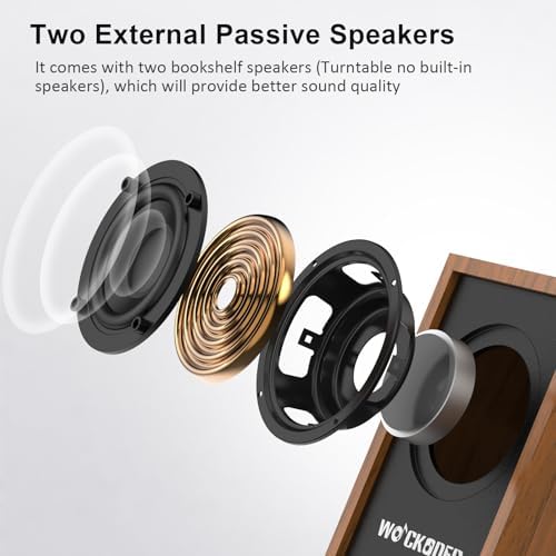 • [All-in-one Vinyl Player Built-in BT Receiver] - Bluetooth connectivity lets you easily stream your music to the vinyl record player's passive bookshelf speakers. Setup is easy and will have you enjoying your vinyl in minutes; An easily removable dust cover protects your vinyl records from damage; Take your tunes anywhere with this portable design