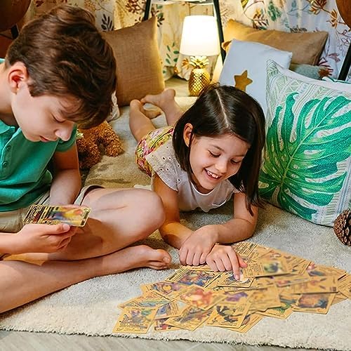 55 Gold Cards Packs for Vmax V EX GX Rare Golden Cards TCG Deck Box Gold Foil Compatible with Fans Collectors Gifts No Duplicate (Gold)