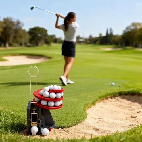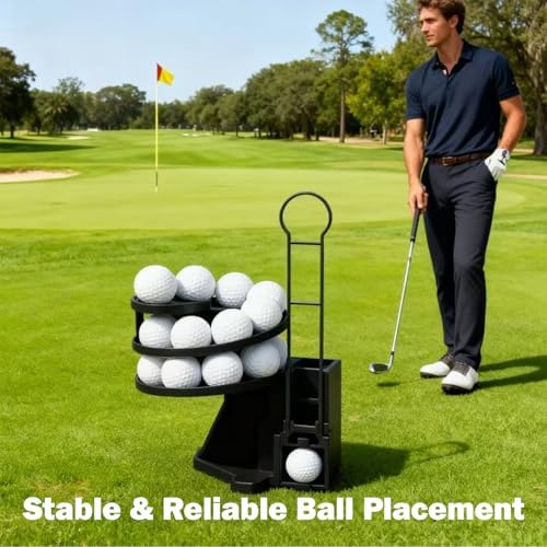 Golf practice dispenser: This ball feeder holds 25 balls for continuous practice sessions. Supports swing repetition without manual ball placement. Uninterrupted practice sessions: Extended capacity reduces reloading frequency during practice. Suitable for driving ranges, simulators, and home use. Simple operation: Tool-free assembly requires no batteries or accessories. Functions on level surfaces indoors or outdoors. Swing rhythm development: Consistent ball placement helps maintain practice tempo. Aids in developing repeating swing motions. Portable training tool: Lightweight construction allows easy transport. For use by individuals practicing golf swings.
