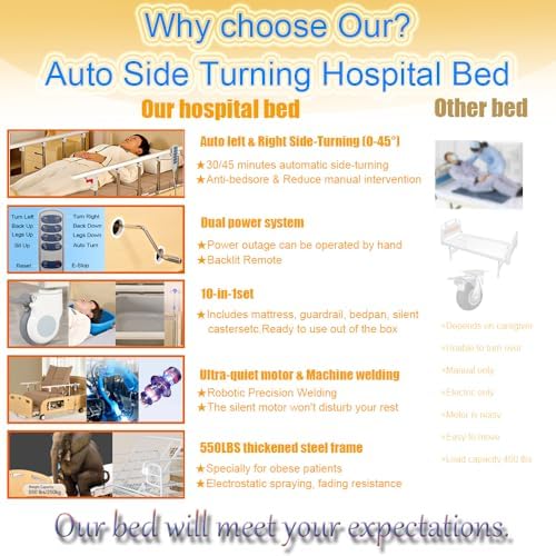 - Gentle Care with Auto Turn: Go beyond basic adjustments. Our advanced programmable turning feature gently rotates the patient at timed intervals (30/45 mins) without manual intervention. This crucial function mimics professional nursing care to significantly enhance comfort and dramatically reduce the risk of developing bedsores