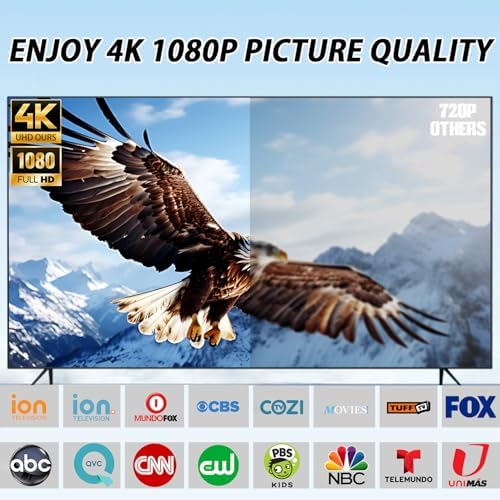 • Compatible with All TVs: Works with all types of TVs—smart TVs, older models (with digital converter box), and even RVs. Supports 4K, 1080P, HD, VHF, and UHF signals for universal compatibility