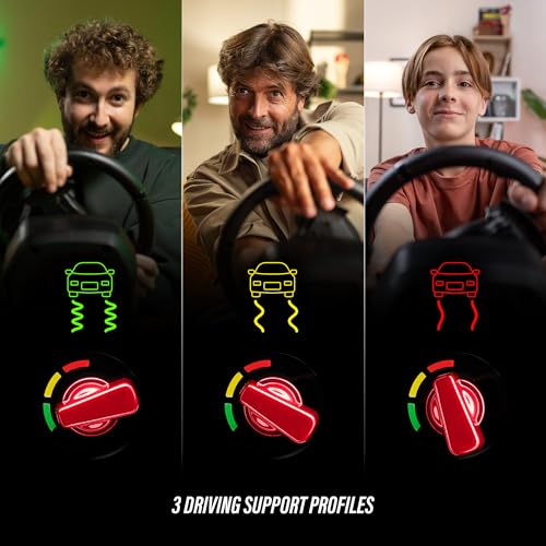Get a dose of joy in every ride with T98 Ferrari 296 GTB! Drive like a real race driver with this Ferrari-licensed racing wheel inspired by the real Ferrari 296 GTB and immerse yourself in thrilling races. The racing wheel's recentering technology and 240° rotation angle with linear resistance allow for precise control of the vehicle, to take winning trajectories and overtake your opponents. The wheel rim and its imitation carbon paddle shifters provide excellent handling, for sporty driving sensations! The selector dial inspired by Ferrari's iconic Manettino lets you switch between the 3 driving support profiles (from the most realistic to the easiest to use) to suit all driving levels, whether you're a beginner or an experienced driver. T98 Ferrari 296 GTB will make your racing games more immersive and intense, for unforgettable races — on your own, or with family and friends!